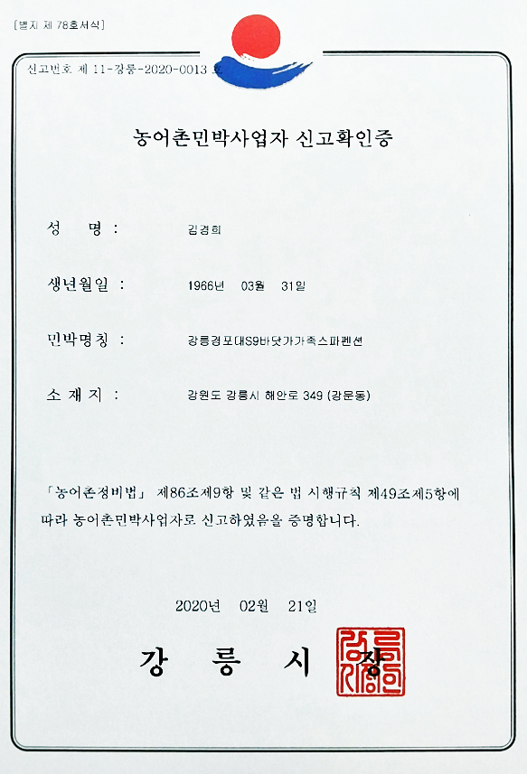 지친 일상의 휴식처,경포 S9펜션에서 편안한 여행이 되시길 바랍니다.